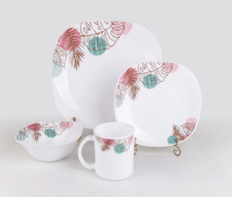 Opal glass Mug: 4PCS, Spinning square bowl: 4PCS, Square plate 110: 4PCS, Square plate 8.0: 4PCS Yes White Yes Multi-colored Leafs Yes Yes 1 5.4