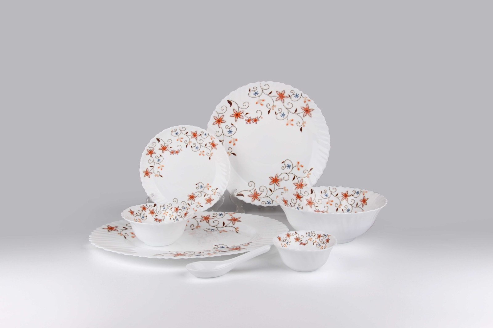 | Flat plate 7.5′ | 6PCS | Salad bowl 8.0′ | 2PCS |