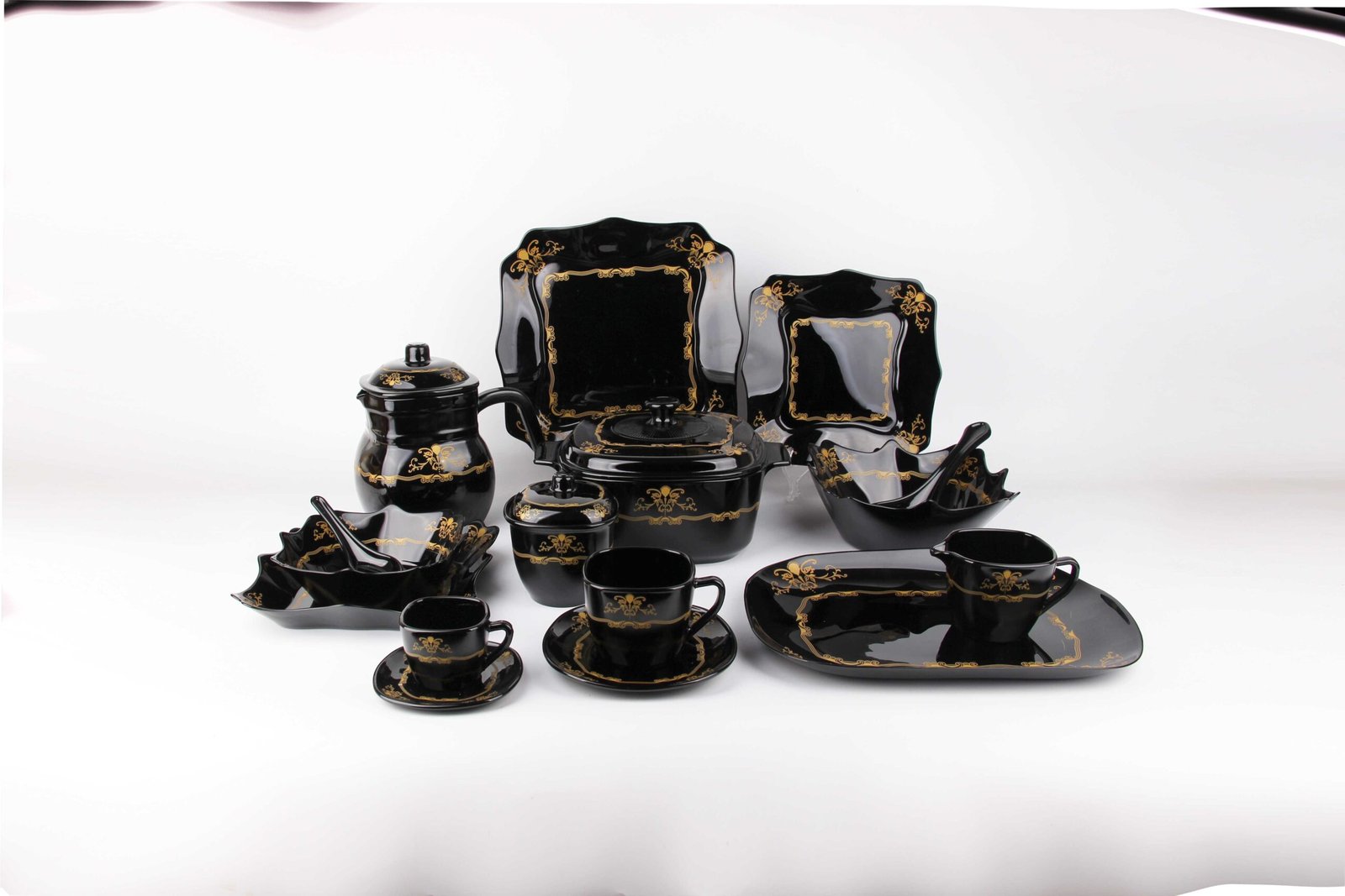 Opal glass BIG SPOON 9: 1PCS, BOWL 9": 2PCS, CASSROLE 2.5L: 1PCS, CASSROLE LID: 1PCS, COFFEE CUP 220CC: 6PCS, COFFEE POT 1.5L: 1PCS, Coffee Pot: 1PCS, Dinner plate 12: 6PCS, FLAT PLATE 10": 6PCS, Milk Pot 190: 1PCS, Oval Plate 12": 2PCS, SAUCER 4.5: 6PCS, Saucer 5.5: 6PCS, SMALL SPOON 5.5": 6PCS, Soup bowl 7: 6PCS, Soup plate 10: 6PCS, Sugar Pot Lid 4.0: 1PCS, SUGAR POT 4: 1PCS, TEA CUP 85CC: 6PCS Bowl, Cup and Dish, Pot Class, Pots, Spoon, Sugar/Milk Cup, Tray Yes Black Yes Multi-Colored Shapes Yes Yes 1 48*44*35.5 0.075 23.5 24.5