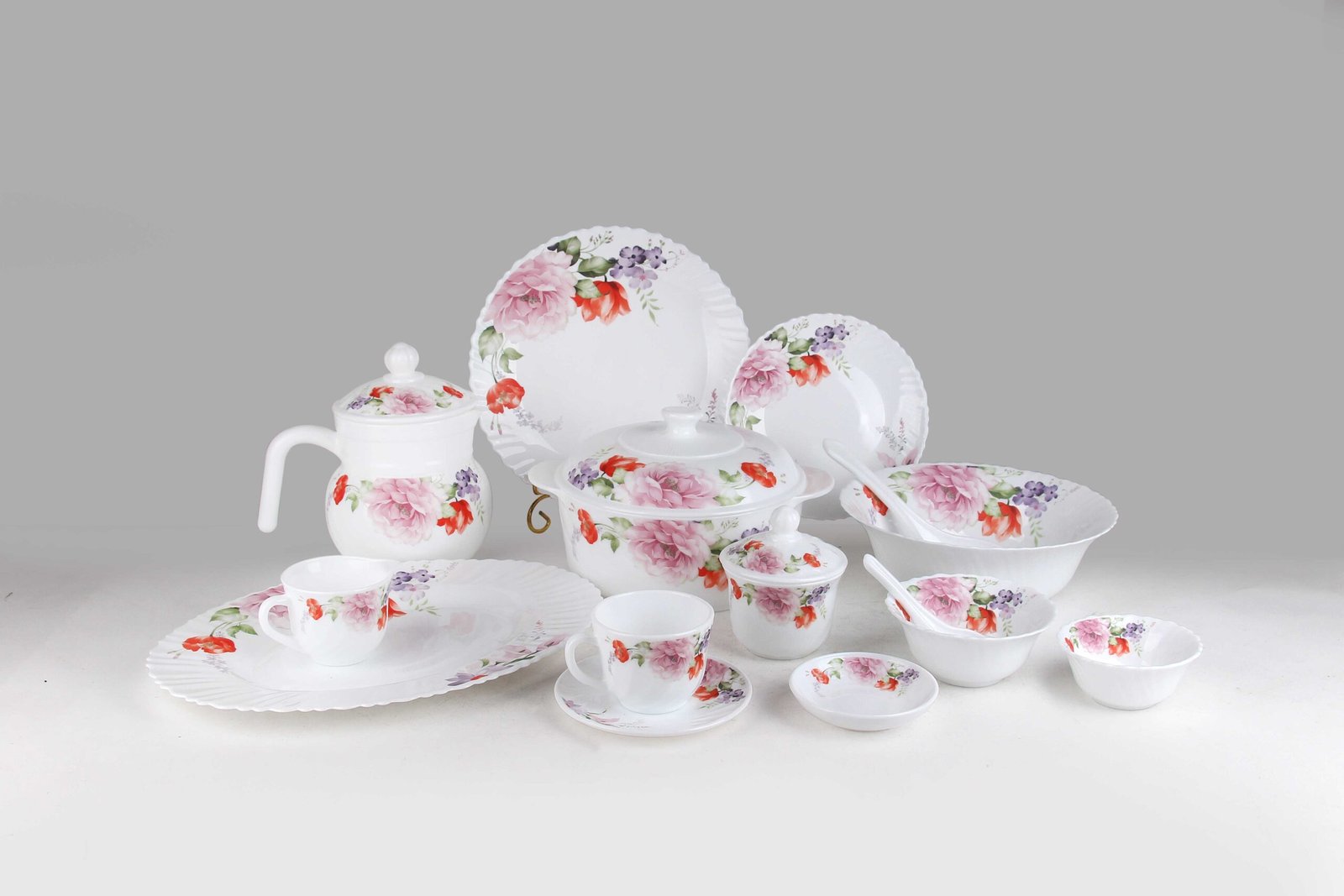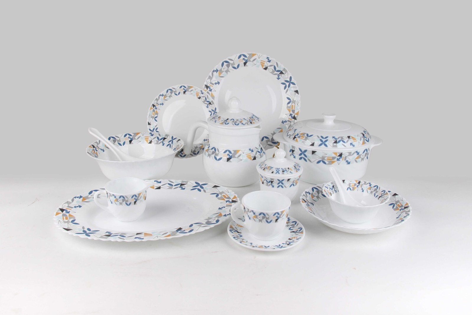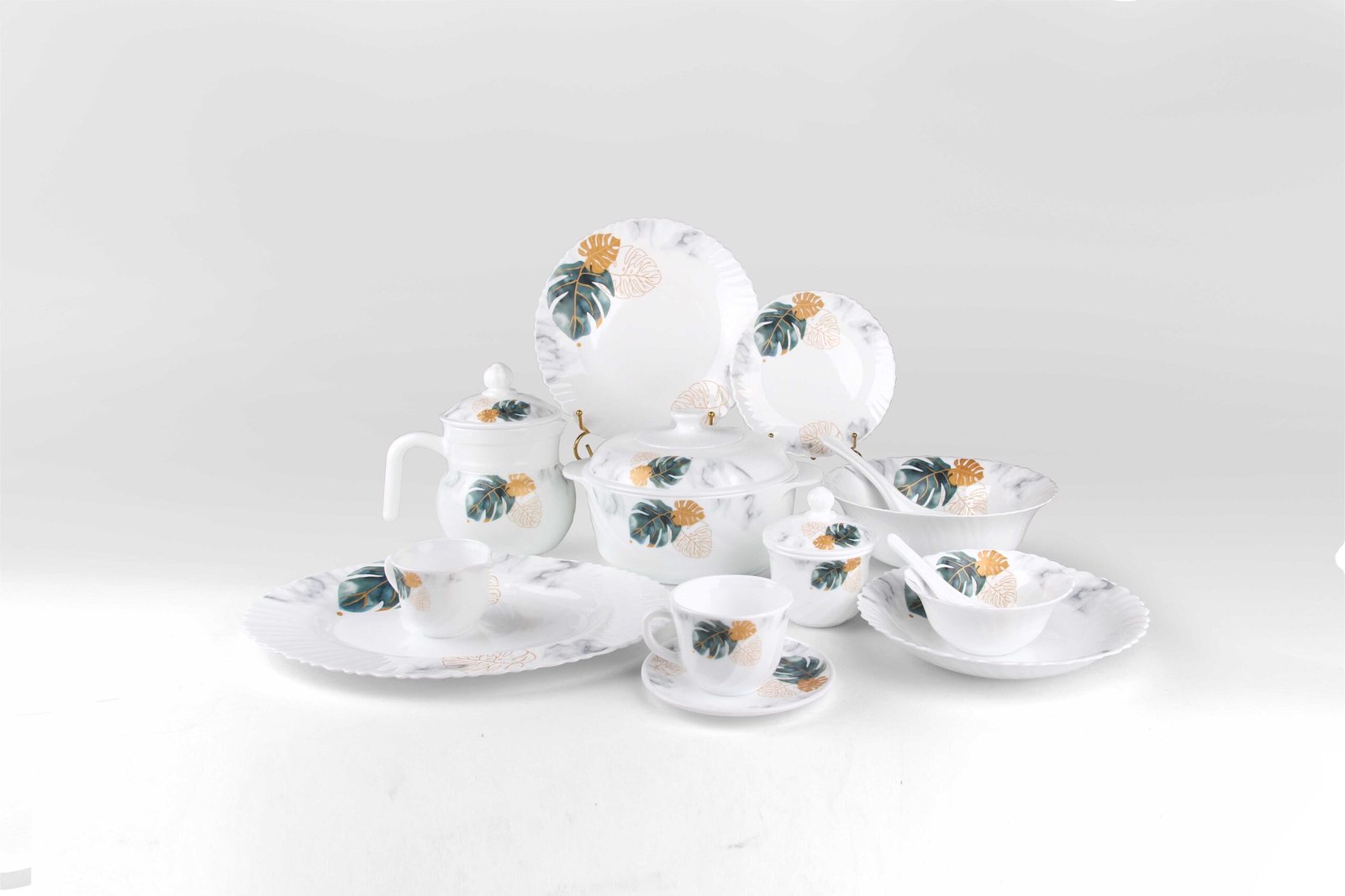 Casserole 2.5 lid: 2PCS, Casserole 2.5: 2PCS, Coffee cup 190CC: 8PCS, Coffee Cup 2.5: 6PCS, COFFEE POT 1.5L: 1PCS, Coffee Pot Lid: 1PCS, Coffee Pot: 1PCS, Dinner plate 10.5: 6PCS, Dinner Plate 10.5: 8PCS, Flat plate 7.5: 6PCS, Flat plate 7.5: 8PCS, Ladle: 4PCS, Milk Pot 190: 1PCS, Oval Plate 13: 2PCS, Oval Plate 13.0: 1PCS, Salad Bowl 5.0: 6PCS, Salad Bowl 5.0: 8PCS, Salad bowl 9.0: 1PCS, Saucer 5.5: 6PCS, Saucer 5.5: 8PCS, Soup plate 8.5: 6PCS, Soup plate 8.5: 8PCS, Soup spoon: 6PCS, Soup Spoon: 8PCS, Sugar Pot  Lid 4.0: 1PCS, SUGAR POT 4: 1PCS